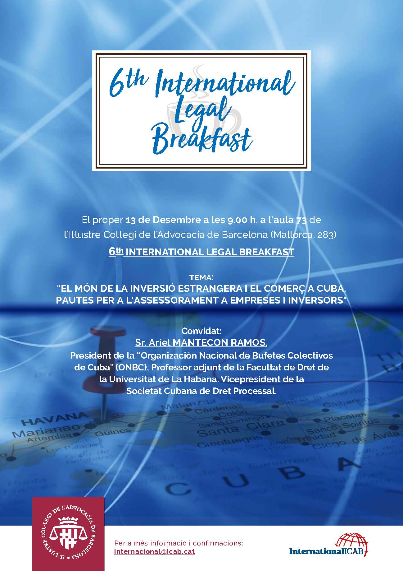 6th International Legal Breakfast: "El món de la inversió estrangera i el comerç a Cuba"