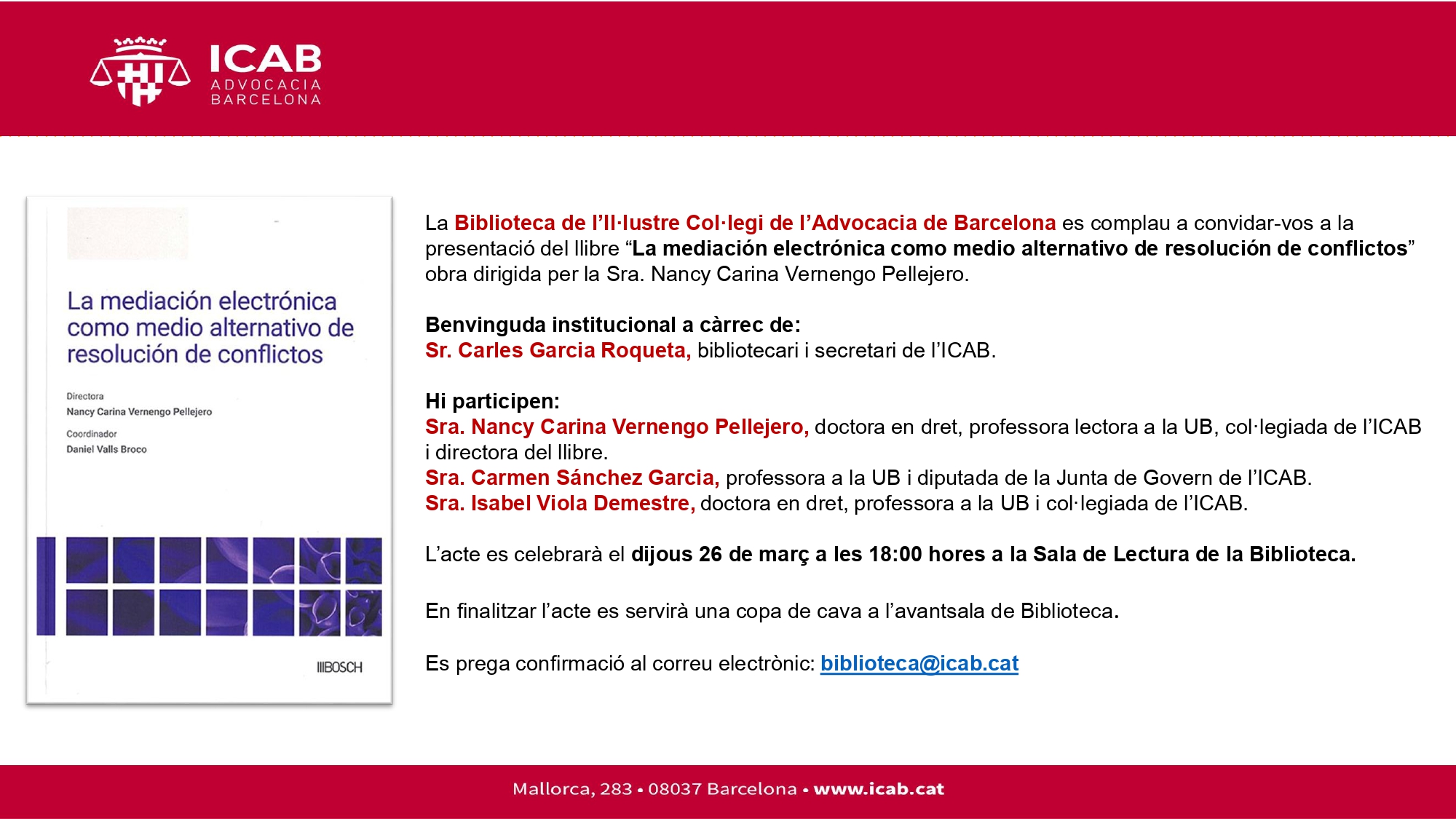 * Aforament limitat a 20 persones per visita. Lloc de trobada: Avantsala de la Biblioteca de l’ICAB.