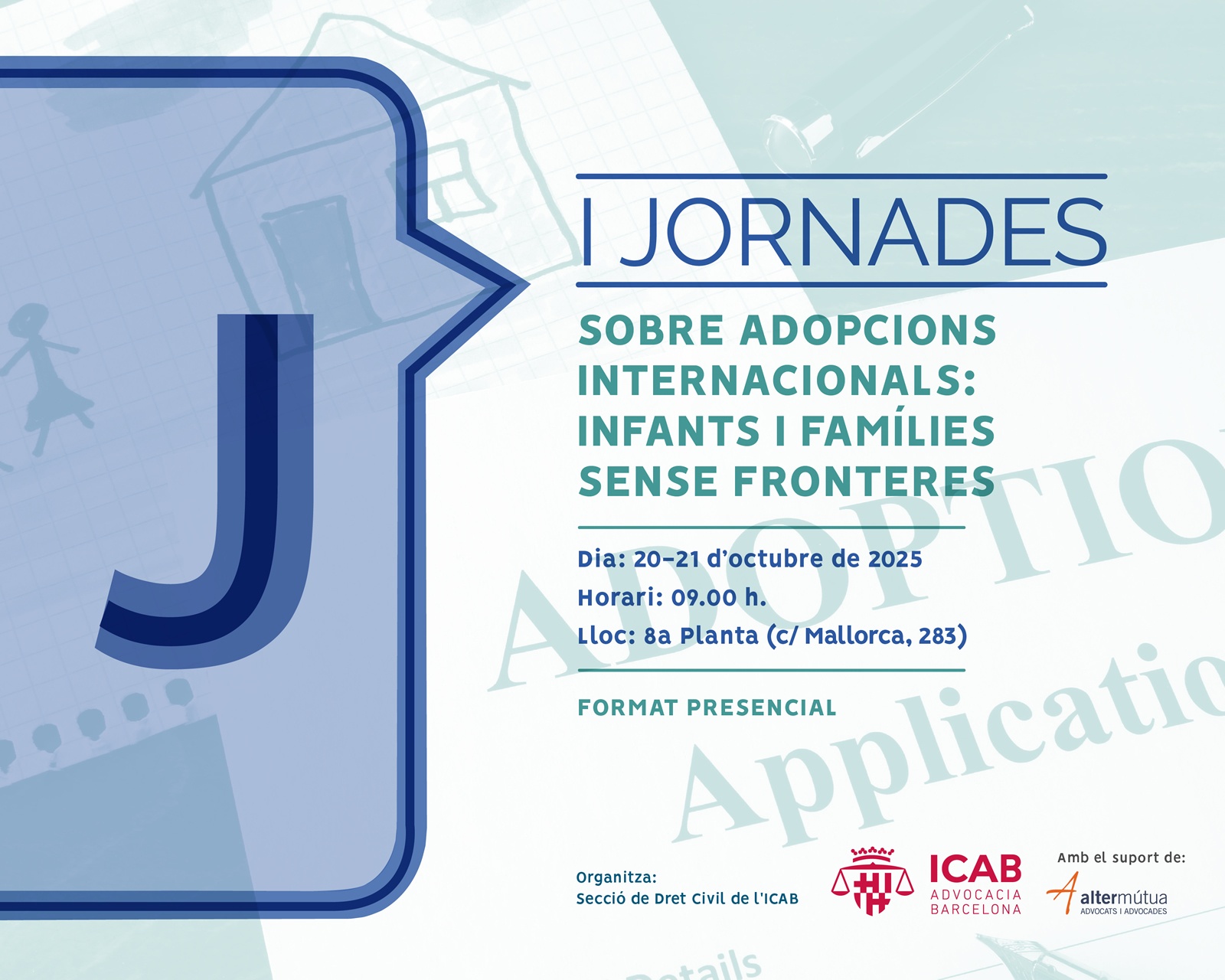 L’Il·lustre Col·legi de l’Advocacia de Barcelona acollirà els dies 13 i 14 de maig de 2025 la I Jornada sobre Adopció Internacional.