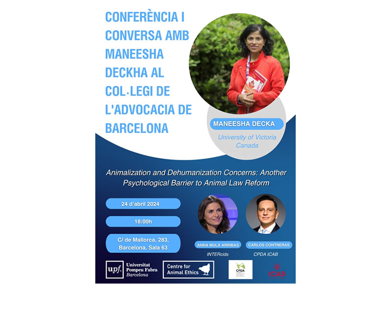 24/04/2024, a les 18h. Coorganitzada per la Comissió de Protecció de Drets dels Animals de l'ICAB i UPF-Centre for Animal Ethics.