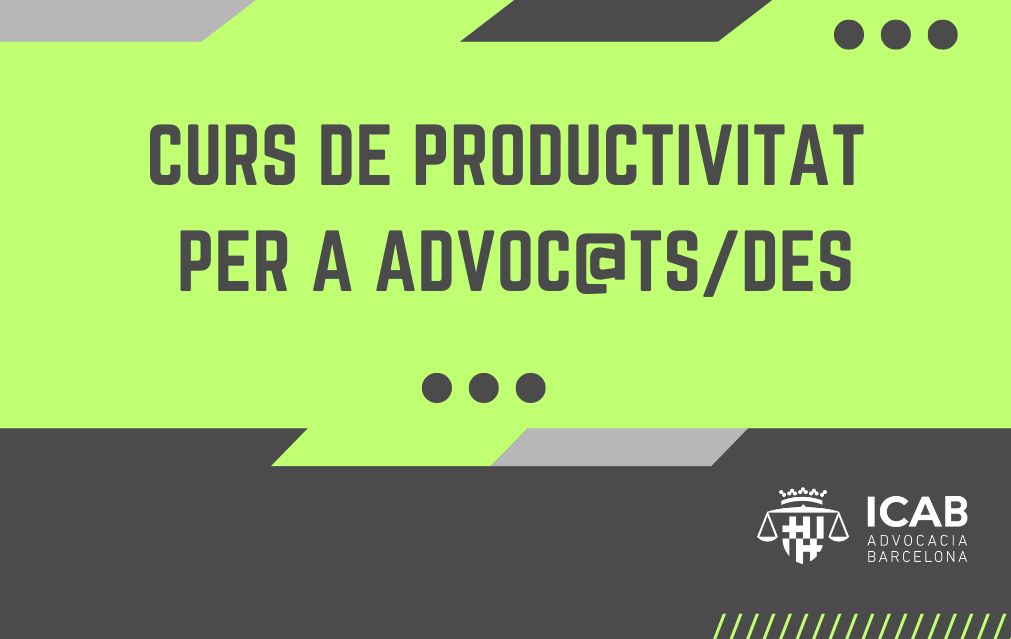 Aquest curs pretén ajudar els advocats/des a comprendre quina és la seva productivitat personal, per posteriorment determinar com millorar-la al despatx i conèixer les eines que més es poden adaptar a la tipologia del despatx, a fi de millorar el rendiment professional i augmentar la conciliació personal i el benestar.