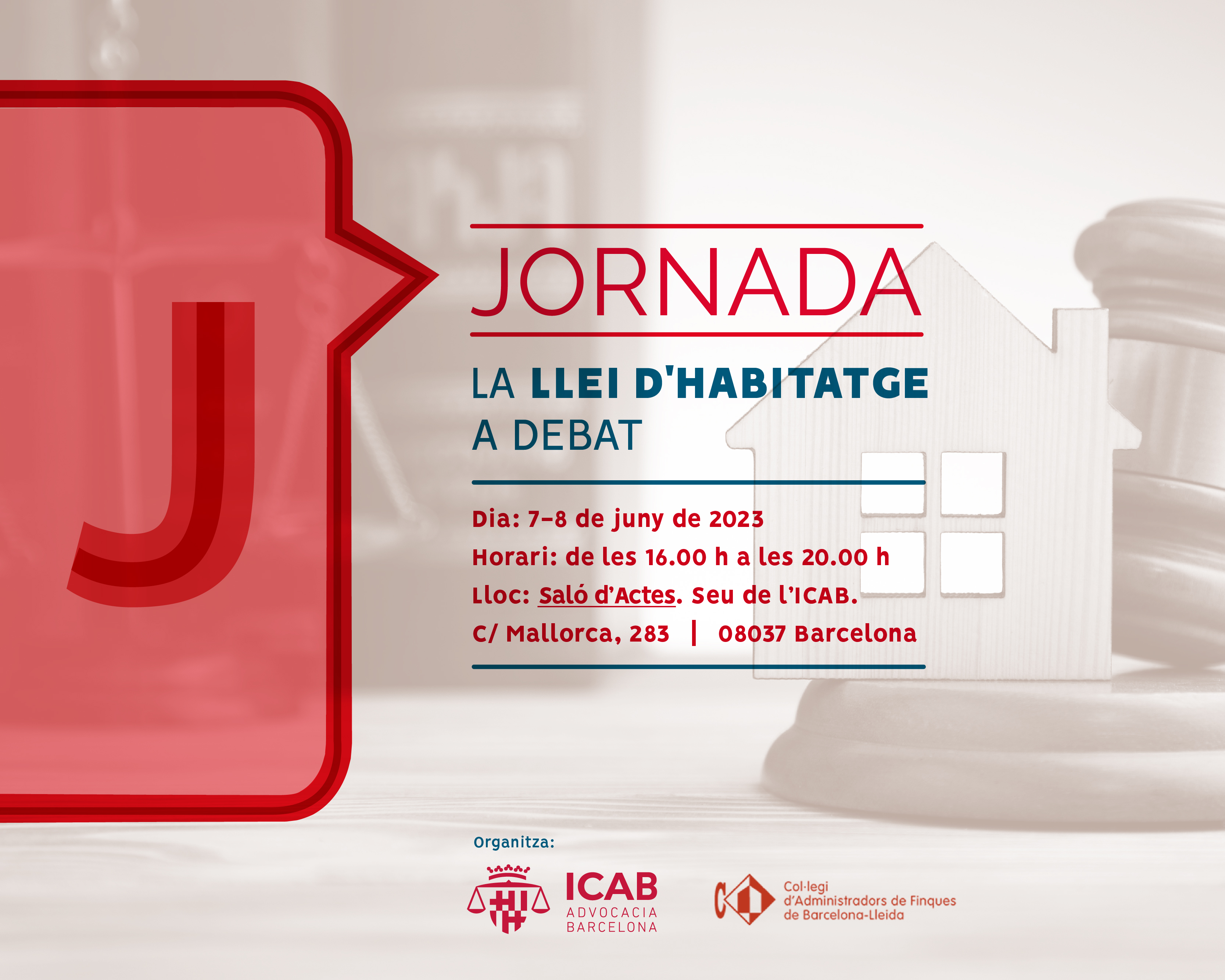 07/06/23 i 08/06/23, a la tarda, a la Sala d'Actes de l'ICAB. Organitzada per l'Il·lustre Col·legi de l'Advocacia de Barcelona i el Col·legi d'Administradors de Finques de Barcelona-Lleida (CAFBL)