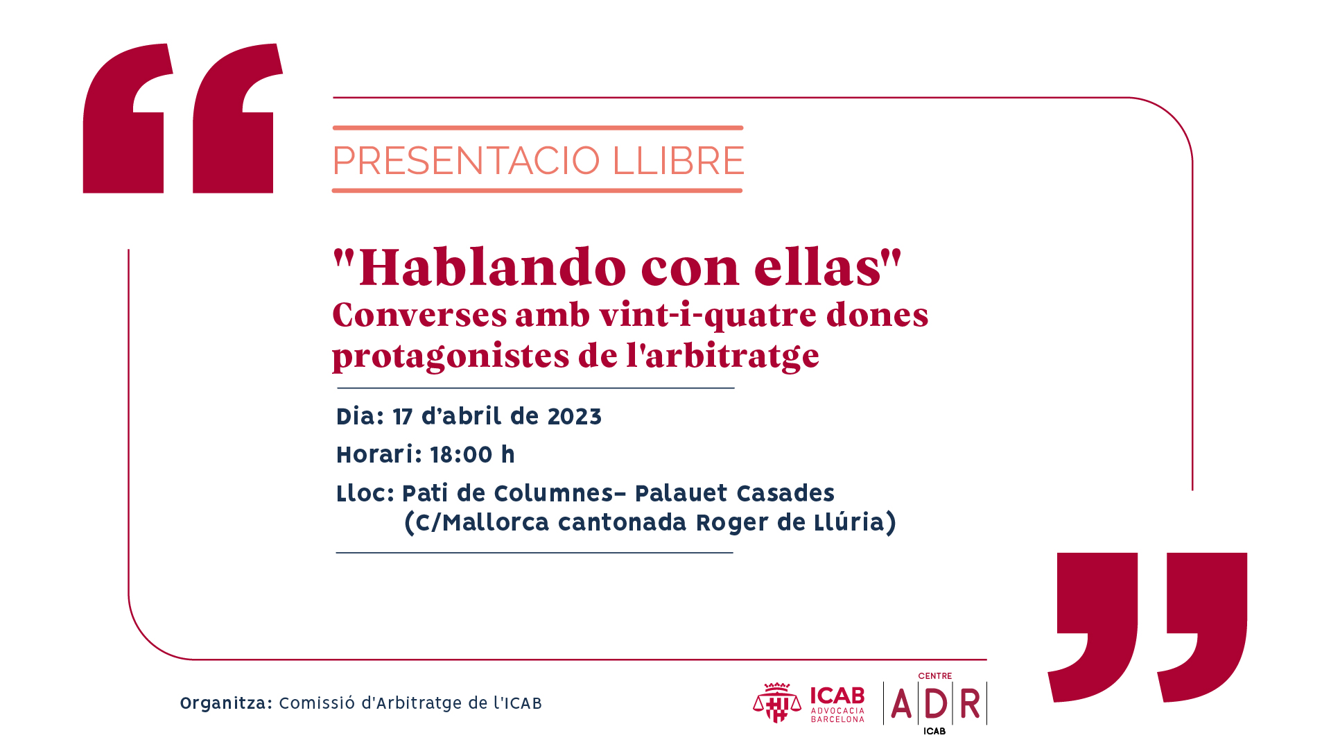 17/04/2023, a les 18h. Organitzada per la Comissió d'Arbitratge de l'ICAB