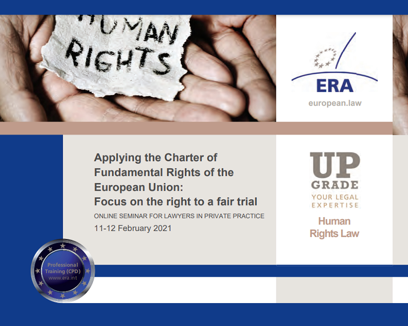This intensive practical online training will provide participants with sound knowledge of the scope and interpretation of the Charter of Fundamental Rights of the European Union and of its practical implementation in national legal orders, in particular with regard to the right to a fair trial.