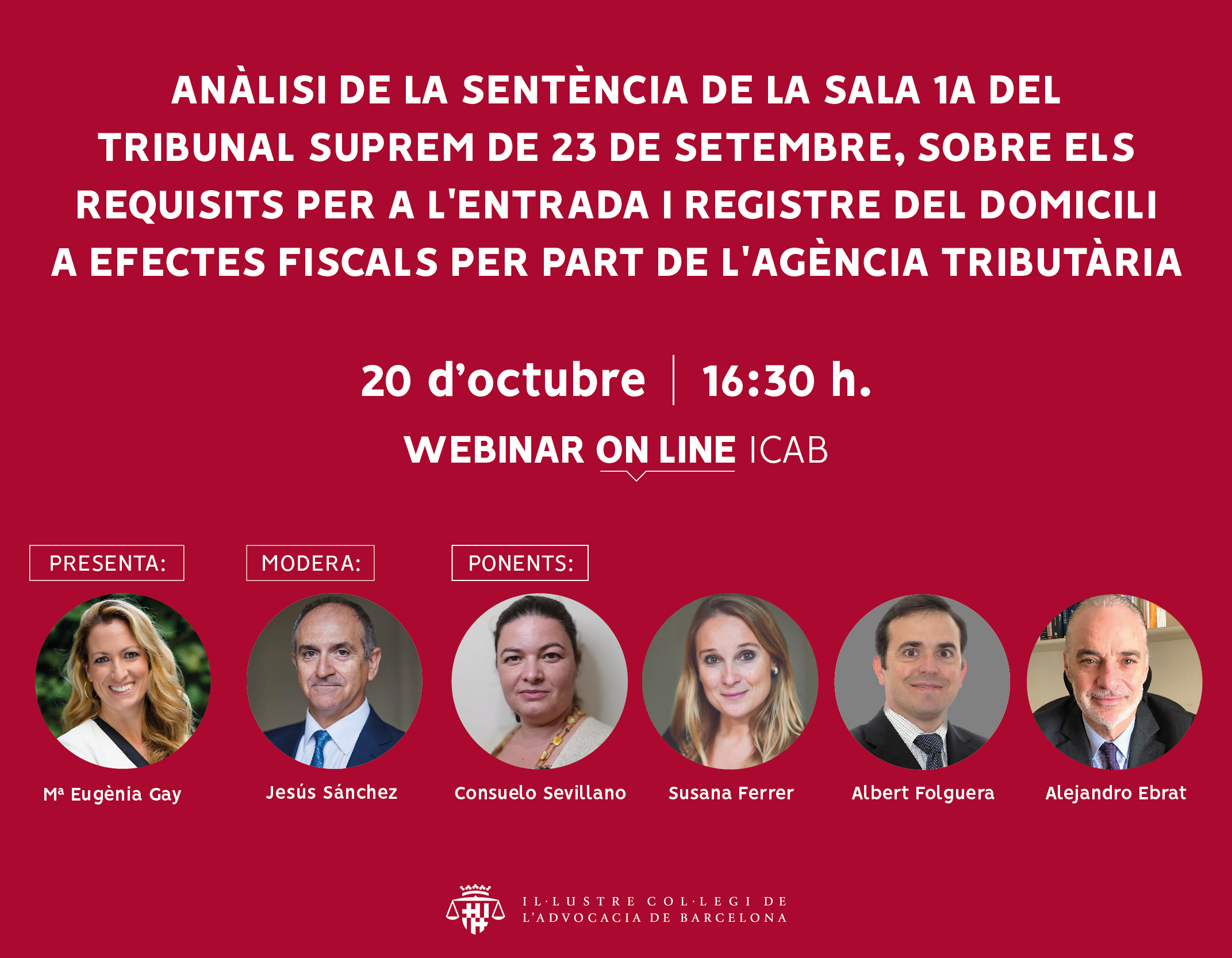 Webinar: Anàlisi de la Sentència de la Sala 1a del Tribunal Suprem de 23 de setembre, sobre els requisits per a l'entrada i registre del domicili a efectes fiscals per part de l'Agència Tributària