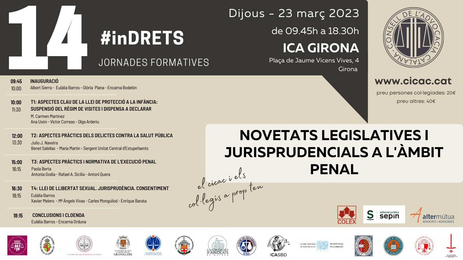 14 Jornadas Formativas #inDRETS: "Novedades legislativas y jurisprudenciales en el ámbito penal"