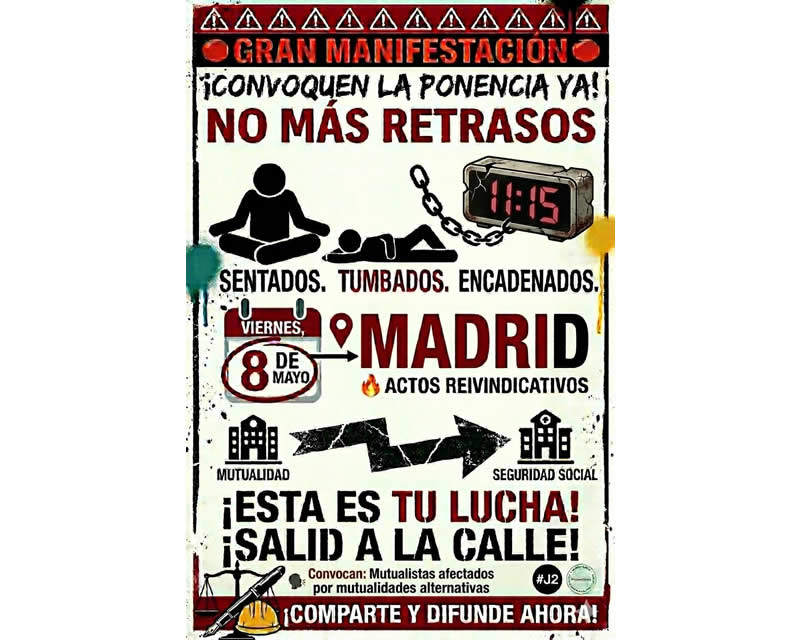 El próximo 10 de abril de 2026, a las 12.30 h, la “Plataforma en el RETA ya” ha convocado una concentración ante la sede del Instituto Nacional de la Seguridad Social (INSS), situada en la calle Sant Antoni Maria Claret, 5-11, con el lema "Legislen ya, pasarela al RETA 1 x 1 para todos".