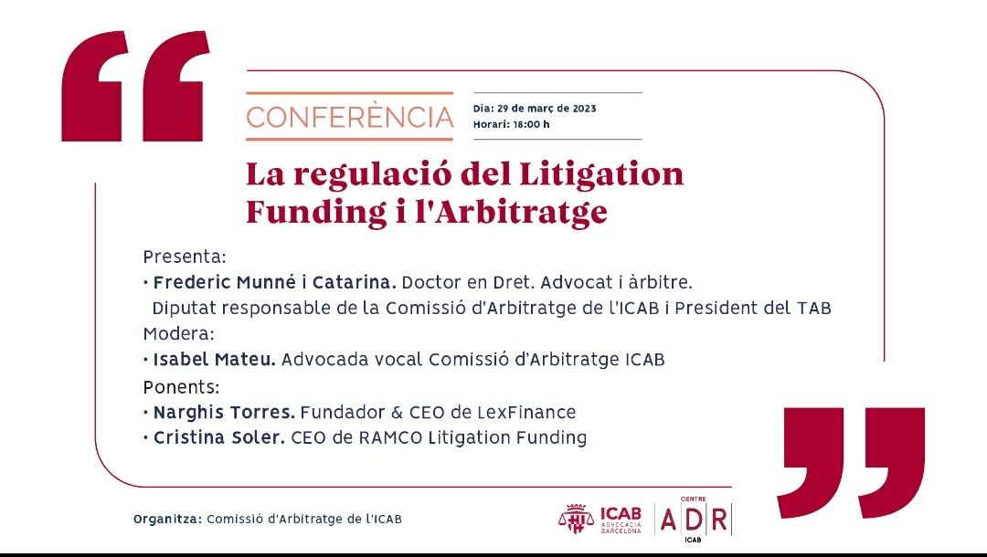 29/03/2023, a las 18h. Organizada por la Comisión de Arbitraje del ICAB