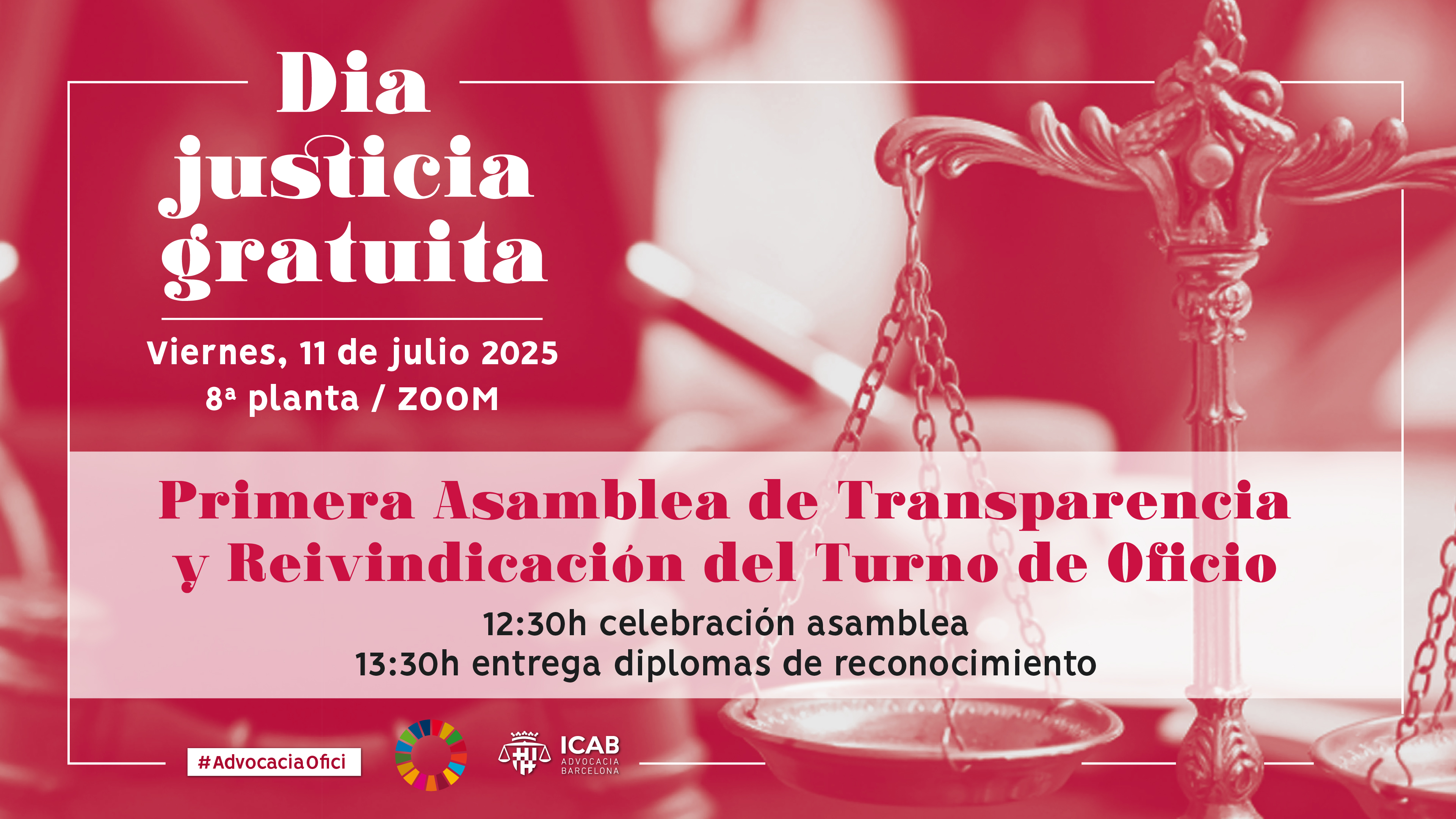 11/07/2025, a las 12:30 h. Acto organizado por la Comisión del Turno de Oficio y Asistencia al Detenido del ICAB en formato presencial y on-line. ¡Os esperamos!