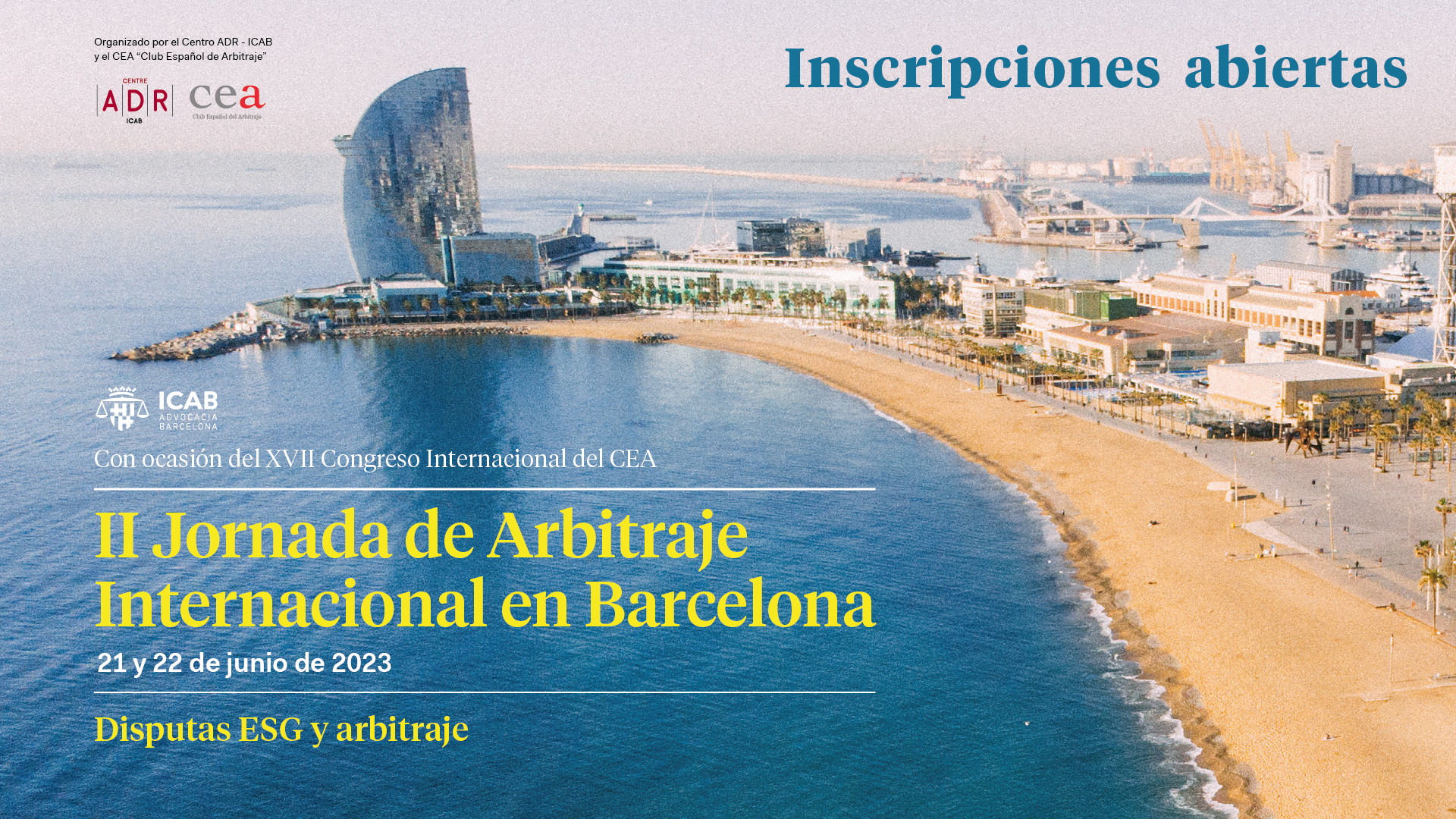 21 y 22 de junio de 2023 en Barcelona, organizado por el Centro ADR - ICAB Arbitraje y el CEA ("Club Español de Arbitraje").