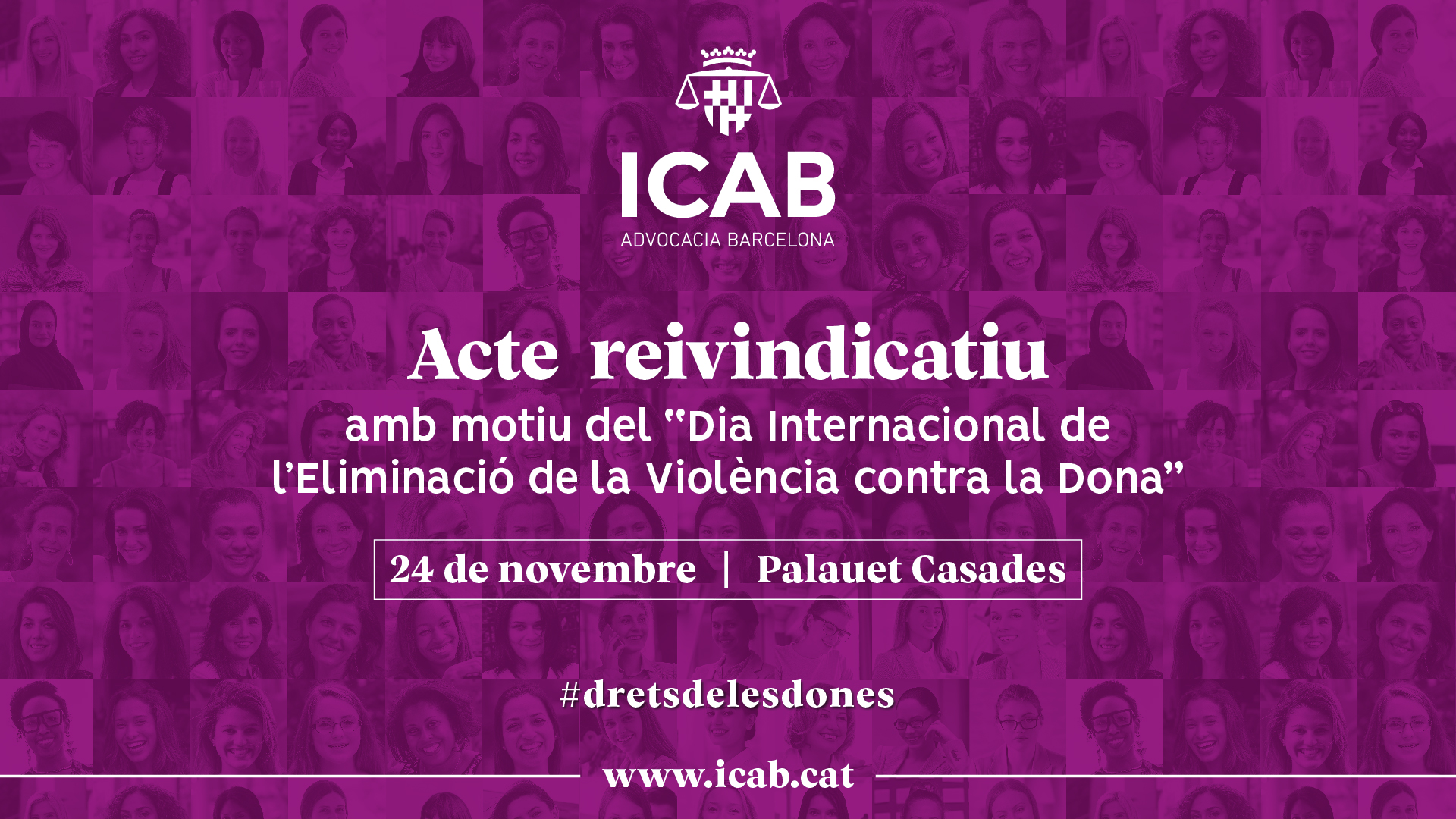 Los Jardines del Palauet Casades acogerán este viernes, 24 de noviembre de 2023, a las 10.30h, el acto reivindicativo del ICAB con motivo del Día internacional de la eliminación de la violencia contra las Mujeres 2023 y la lectura de un manifiesto elaborado por la Comisión de Mujeres Abogadas.