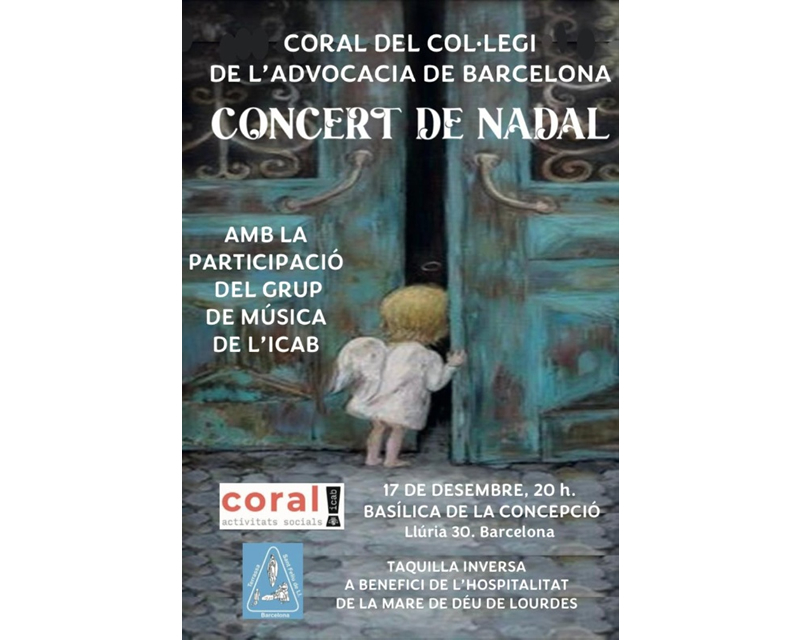 El martes 17 de diciembre de 2024, a las 20 h, la Coral del Ilustre Colegio de la Abogacía de Barcelona (ICAB) ofrecerá su tradicional concierto de Navidad en la Basílica de La Concepció (Llúria 30, de Barcelona).