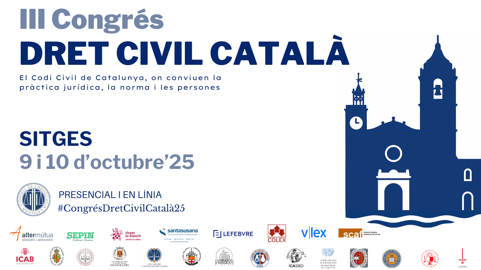 Los días 9 y 10 de octubre de 2025, el Consell de l'Advocacia Catalana organiza el III CONGRESO DE DERECHO CIVIL CATALÁN: “Más allá del Código Civil de Cataluña, donde conviven la práctica jurídica, la norma y las personas”.