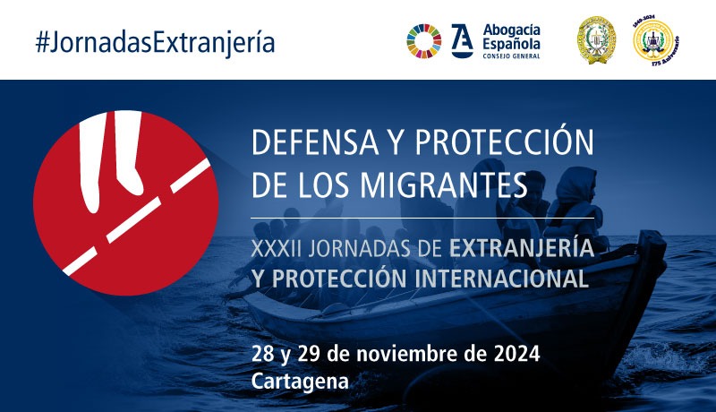 La Subcomisión de Extranjería y Protección Internacional del Consejo General de la Abogacía Española (CGAE) celebra los días 28 y 29 de noviembre de 2024 en la ciudad de Cartagena sus “XXXII Jornadas: “Defensa y protección de los migrantes”.
