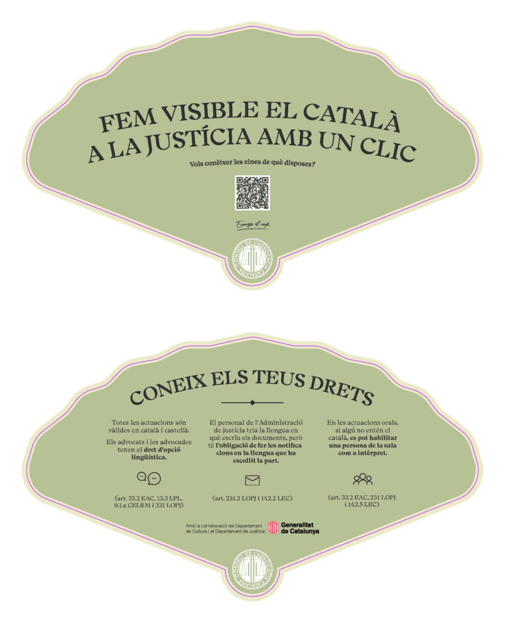 El 12 de julio de 2022, en el marco conmemorativo del Día de la Justicia Gratuita y el Turno de Oficio, el Servicio Lingüístico del "Consell de l'Advocacia Catalana" dará gratuitamente a todas las personas colegiadas un abanico con información ... -