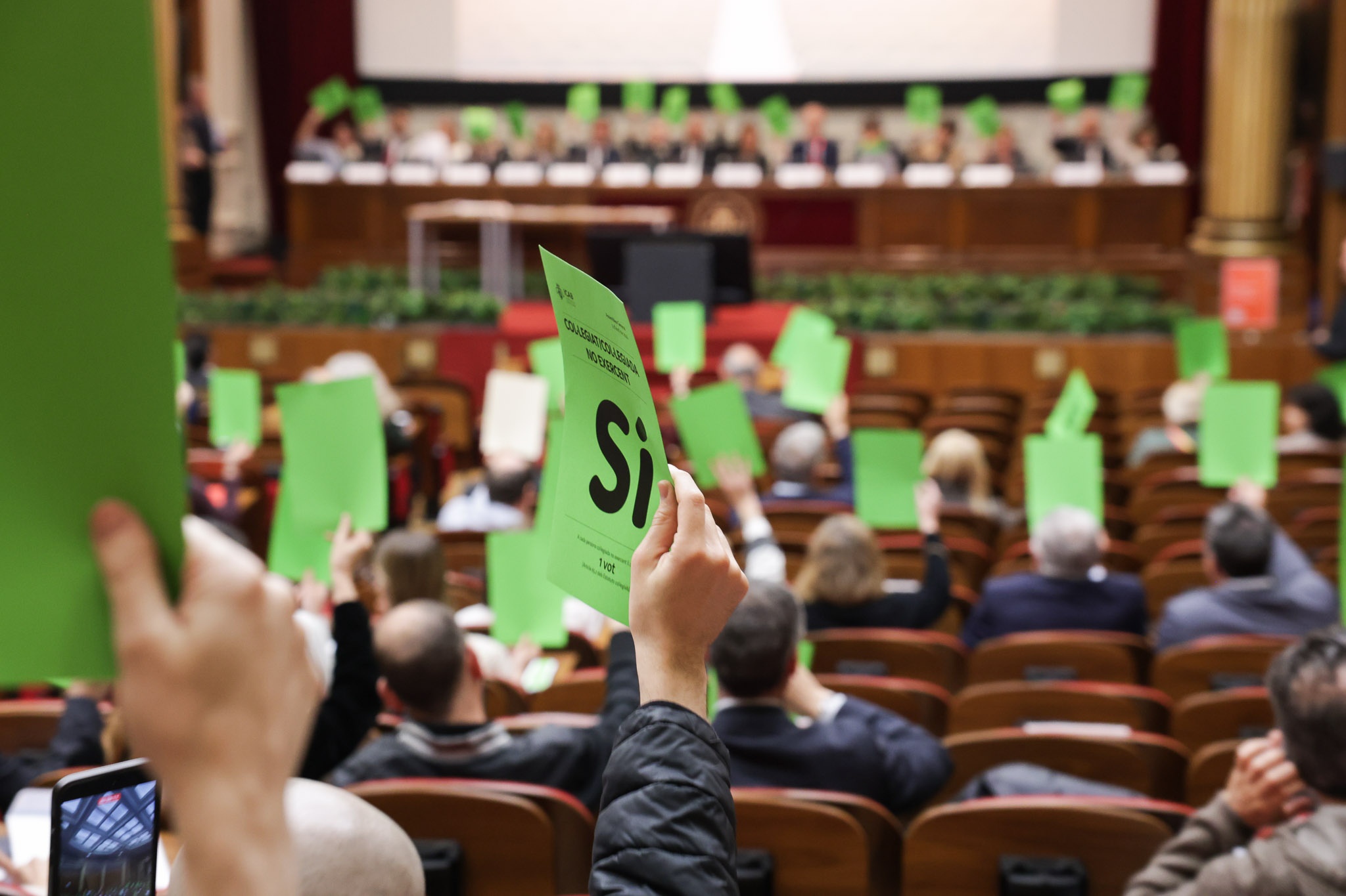 A continuación, se han efectuado las votaciones sobre la gestión de la Junta de Gobierno, la Memoria de Actividades, los Estados Financieros y la liquidación presupuestaria correspondiente al ejercicio 2025, con los siguientes resultados: 228 votos a favor, 17 votos en contra y 4abstenciones. El presupuesto ordinario de la Corporación para el ejercicio 2026 ha sido aprobado por 228 votos a favor, 17 en contra y 2 abstenciones.