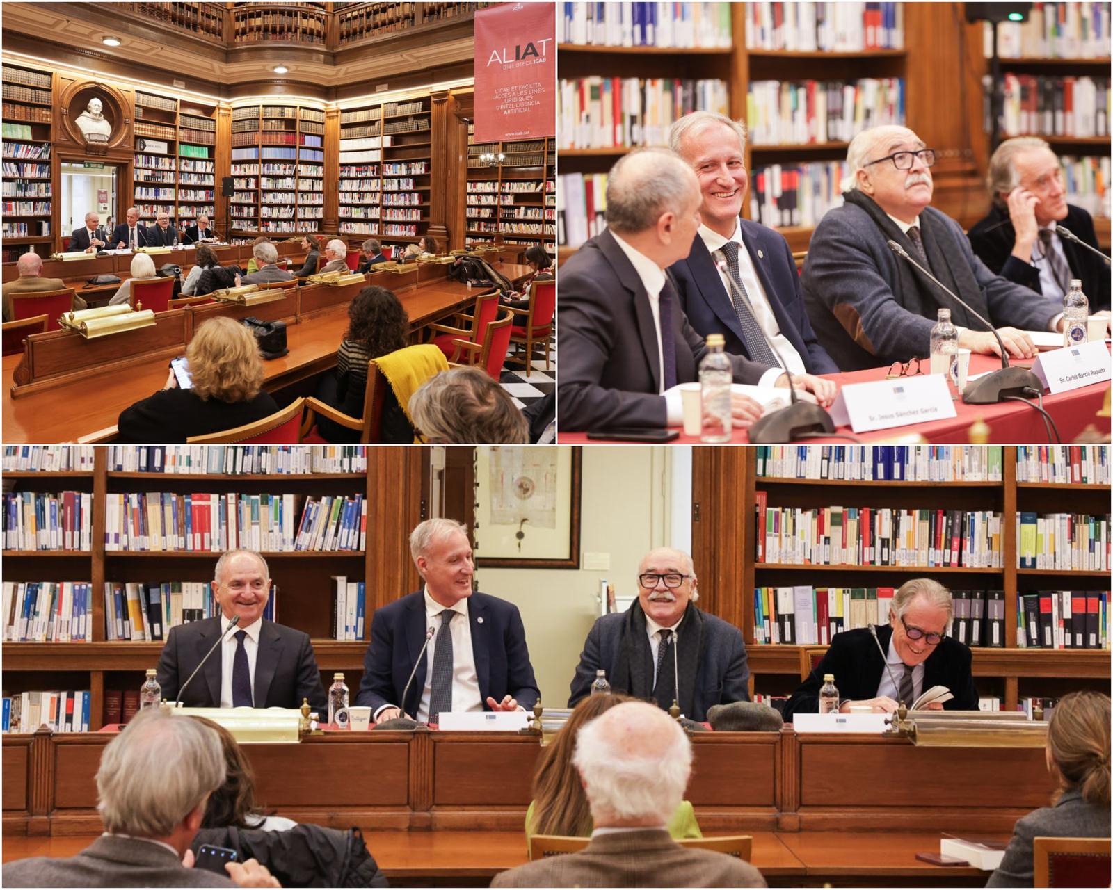 La sesión ha contado con la bienvenida institucional del secretario y bibliotecario del ICAB, Carles Garcia Roqueta, y con la participación del decano emérito Jesús M. Sánchez, el secretario emérito Luis Sales y el propio autor.