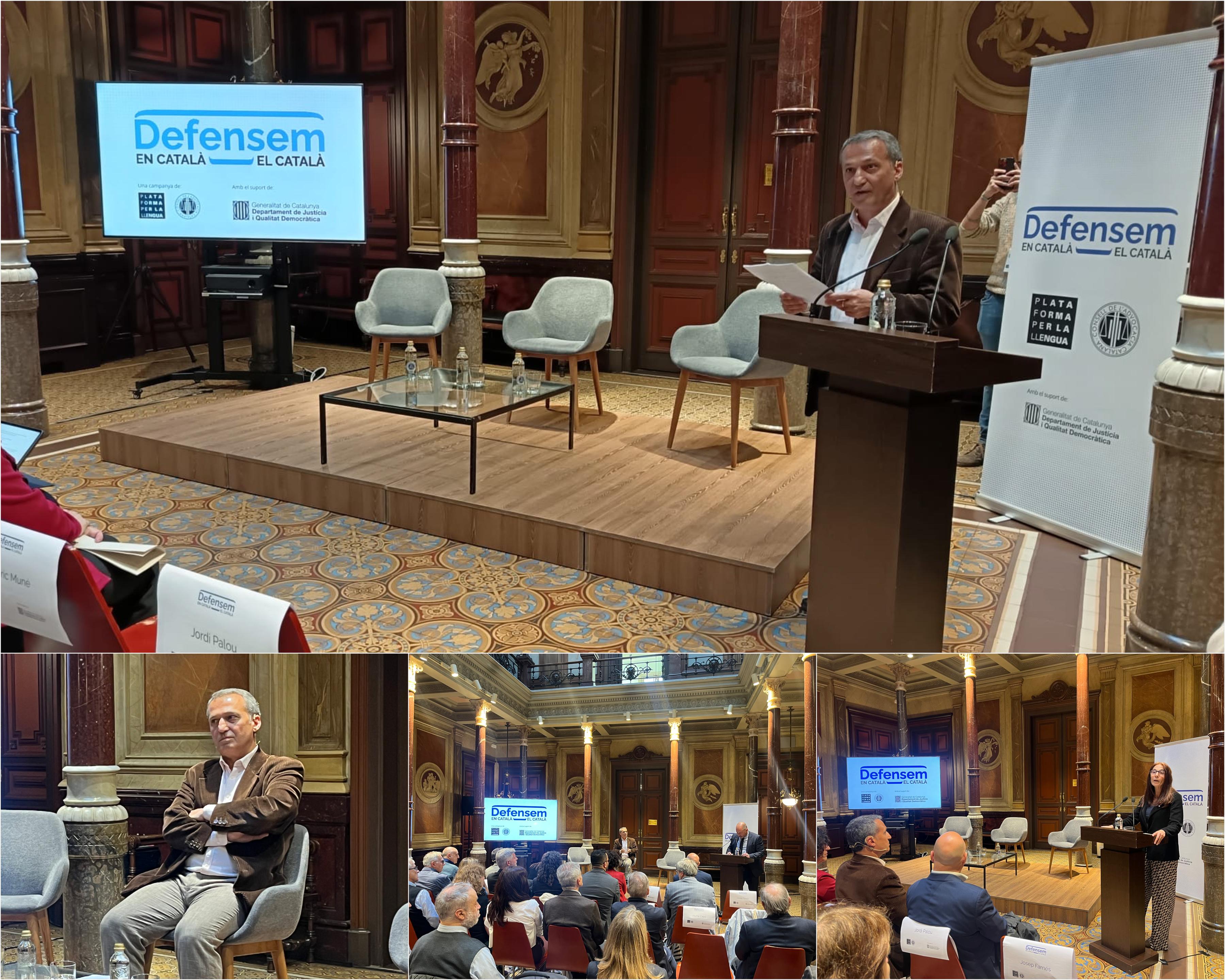 Munné moderó una conversación entre David Casellas, presidente de la Comisión de Lengua del CICAC, y Mireia Plana, vicepresidenta de Plataforma per la Llengua, en la que se abordaron estrategias y recursos para facilitar la atención jurídica en catalán.