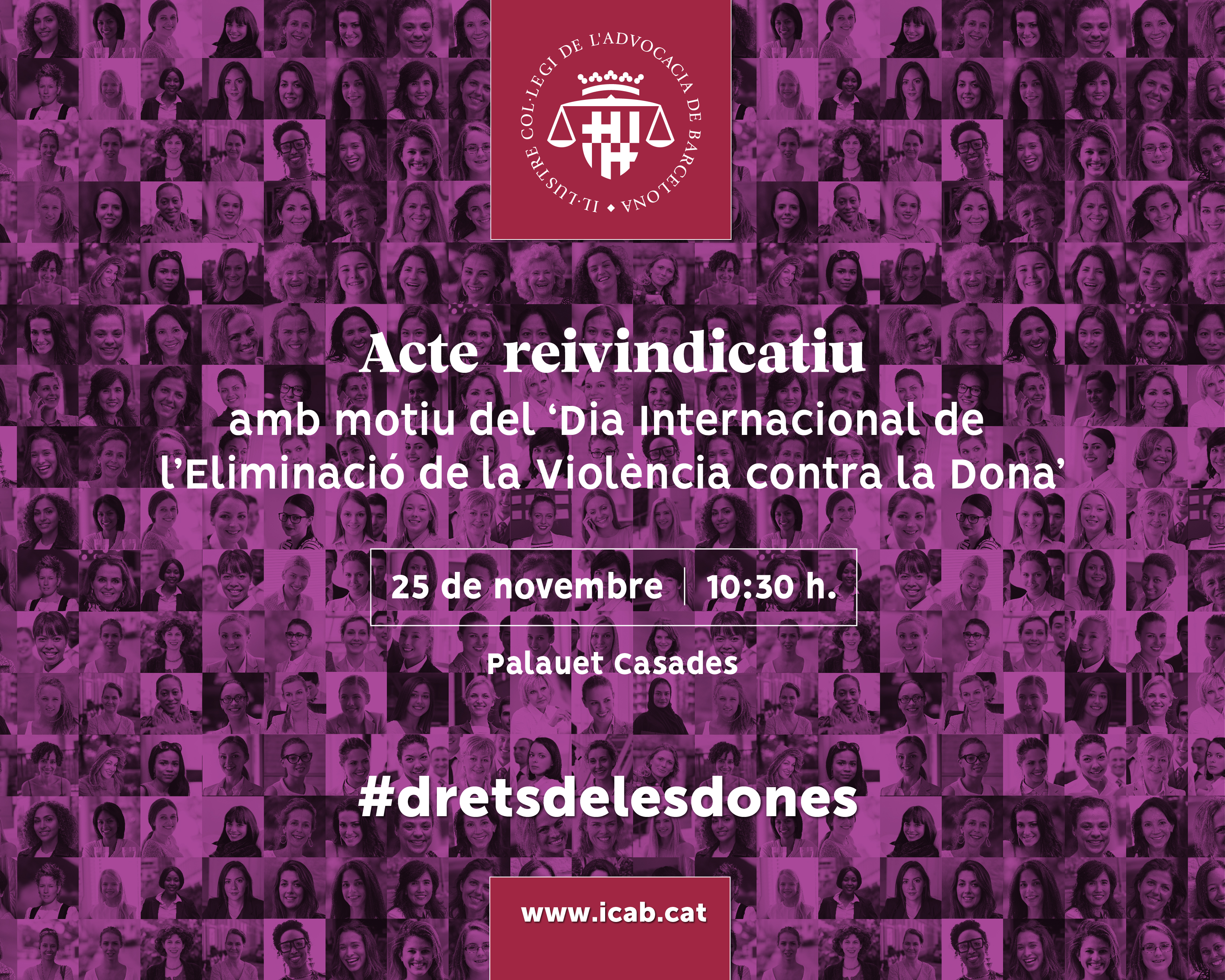 El ICAB realizará un acto reivindicativo con motivo del 'Día Internacional de la Eliminación de la Violencia contra la Mujer'
