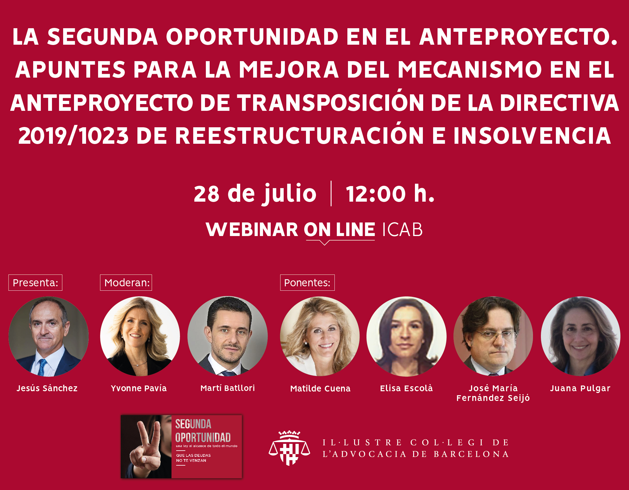 Webinar: LA SEGUNDA OPORTUNIDAD EN EL ANTEPROYECTO. Apuntes para la mejora del mecanismo en el Anteproyecto de transposición de la Directiva 2019/1023 de reestructuración e insolvencia
