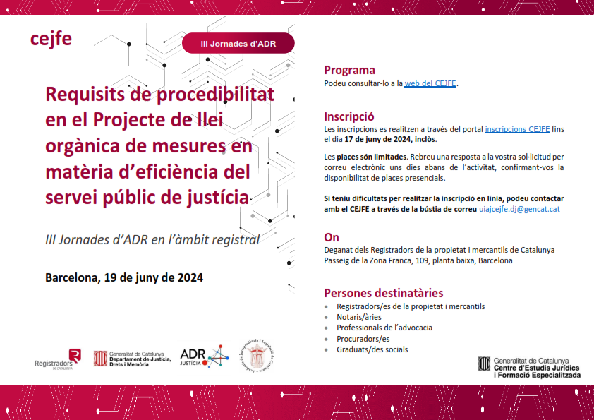 III Jornades d’ADR en l’àmbit registral: Requisits de procedibilitat en el Projecte de llei orgànica de mesures en matèria d’eficiència del servei públic de justícia
