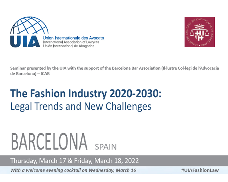Els propers 17 i 18 de març de 2022, el Col·legi de l'Advocacia de Barcelona acollirà un seminari organitzat per la UIA (Unió internacional d'Advocats) -de la qual el nostre Col·legi n'és membre-, durant el qual es tractarà el següent tema: “The Fashion Industry, Legal Trends and New Challenges”.
