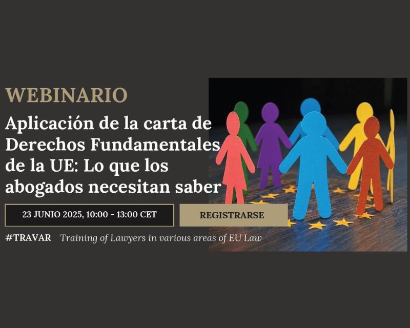 Dins del marc del projecte TRAVAR, el pròxim 23 de juny de 2025, de 10.00 a 13.00 CET, se celebrarà un webinar en línia dedicat a l'aplicació nacional de la Carta de Drets Fonamentals de la Unió Europea.
