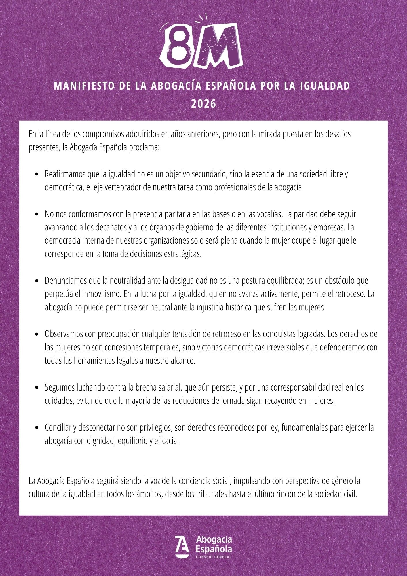 8M CGAE | Manifest de l'Advocacia Espanyola per la Igualtat (2026)