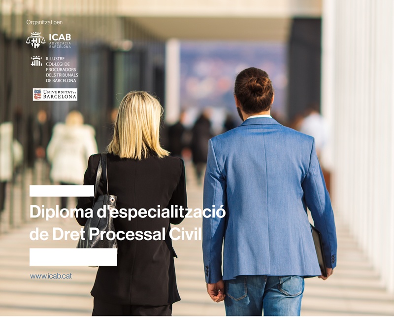 Properament anunciarem les noves dates del Diploma d'especialització de Dret Processal Civil, una proposta formativa de primer nivell, organitzada conjuntament per l'I·lustre Col·legi de l'Advocacia de Barcelona (ICAB), la Universitat de Barcelona (UB) i l'Il·lustre Col·legi de Procuradors de Barcelona.