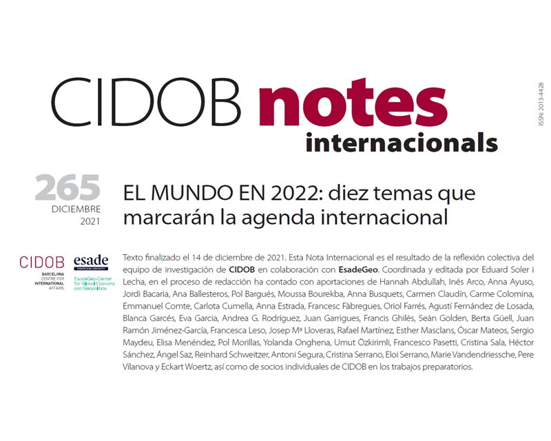 Article CIDOB Notes: ‘El Mundo en 2022: diez temas que marcarán la agenda internacional’