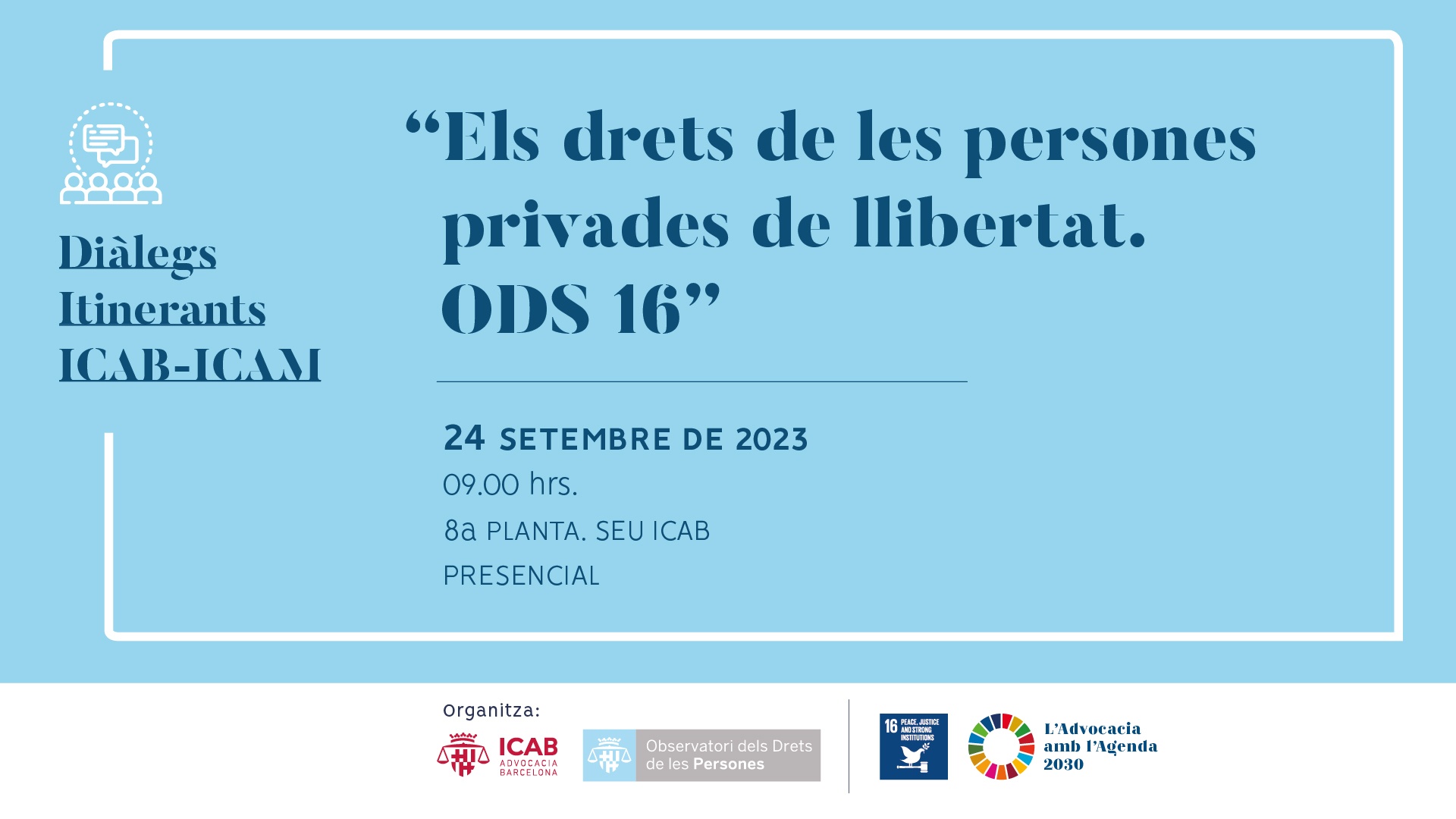 El degà de l’Il·lustre Col·legi de l'Advocacia de Barcelona (ICAB) i president de la Comissió de Drets Humans del Consell de l’Advocacia Catalana (CICAC), Jesús M. Sánchez García, presentarà aquest primer “diàleg itinerant ICAB-ICAM”, en el qual es comptarà amb la participació del testimoni ciutadà de Toni Martínez i les intervencions d’Albert Batlle, regidor, tercer tinent d’alcaldia, director de l’àrea de prevenció, seguretat, convivència i règim interior de l'Ajuntament de Barcelona, ex director de Mossos Esquadra i ex secretari de Serveis Penitenciaris; Cristina Ferrando, jutgessa degana de Barcelona i Cristóbal Martell, advocat penalista. L’acte serà moderat per Erika Torregrossa, copresidenta de l'Observatori de Drets de les Persones de l'ICAB i clausurat per Silvia Giménez-Salinas, degana emèrita de la Corporació i copresidenta de l'Observatori de Drets de les Persones de l'ICAB.