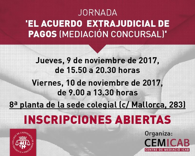 El 9 i 10 de novembre, jornada sobre l’Acord Extrajudicial de Pagaments