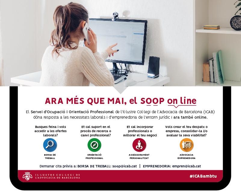 El Servei d’Ocupació i Orientació Professional (SOOP) de l’ICAB segueix oferint els seus serveis on-line
