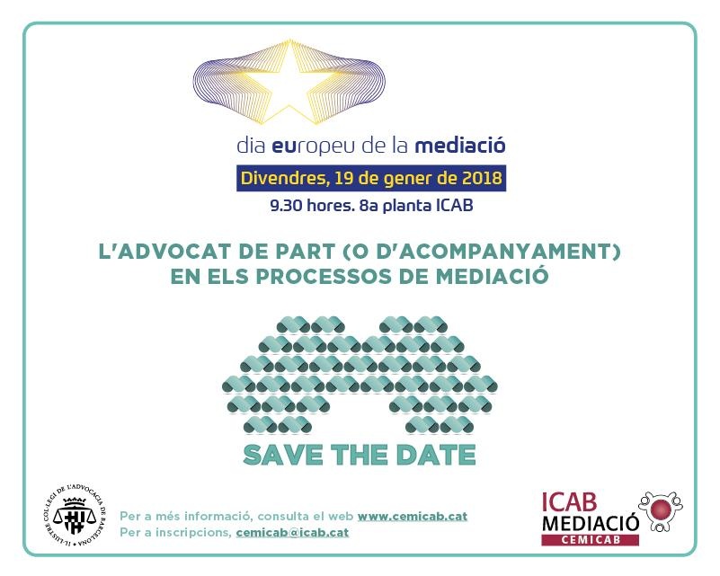 En el marc del Dia Europeu de la Mediació, jornada sobre la mediació a l’ICAB: 'L’advocat de part (o d’acompanyament) en els processos de mediació'