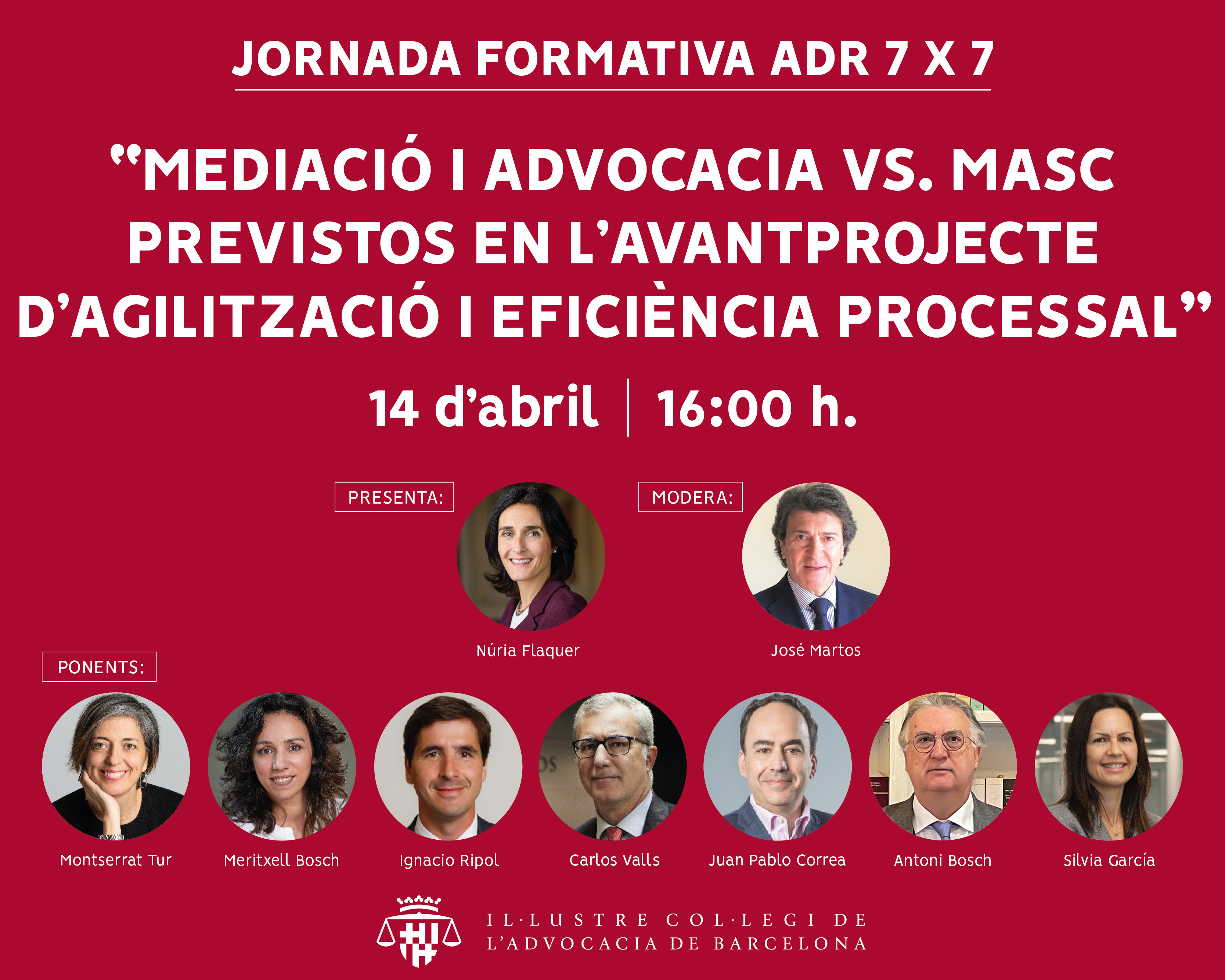 Inscripcions obertes a la Jornada 7X7: Mediació i advocacia vs masc previstos en l'Avantprojecte d'Agilització i Eficiència Processal
