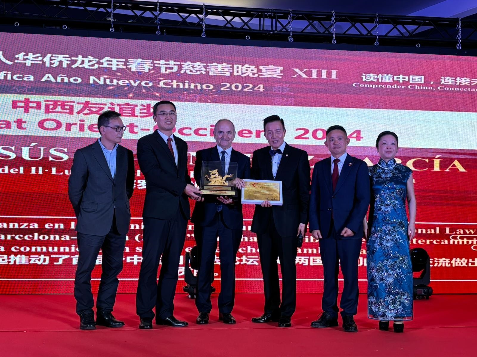 El degà, Jesús M. Sánchez, ha rebut en nom del col·legi el premi que la Federación Unión de Asociaciones Chinas en España ha atorgat a la Corporació en un acte que ha tingut lloc aquest dissabte 17 de febrer de 2024 en el marc de la celebració de l'Any Nou de la comunitat xinesa catalana.
