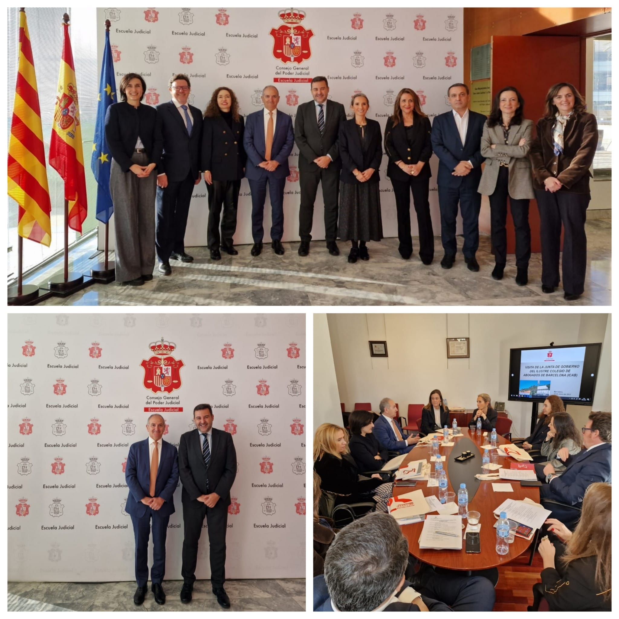 En el marc d’aquesta trobada, la delegació del Col·legi de l'Advocacia de Barcelona, encapçalada pel degà, Jesús M. Sánchez, s’ha reunit amb el director de l’Escola Judicial, Jorge Jiménez, la cap de la secció de formació inicial, Clara Carulla, i la professora de l’Àrea de Dret Civil i Processal Civil, Rosa Méndez.