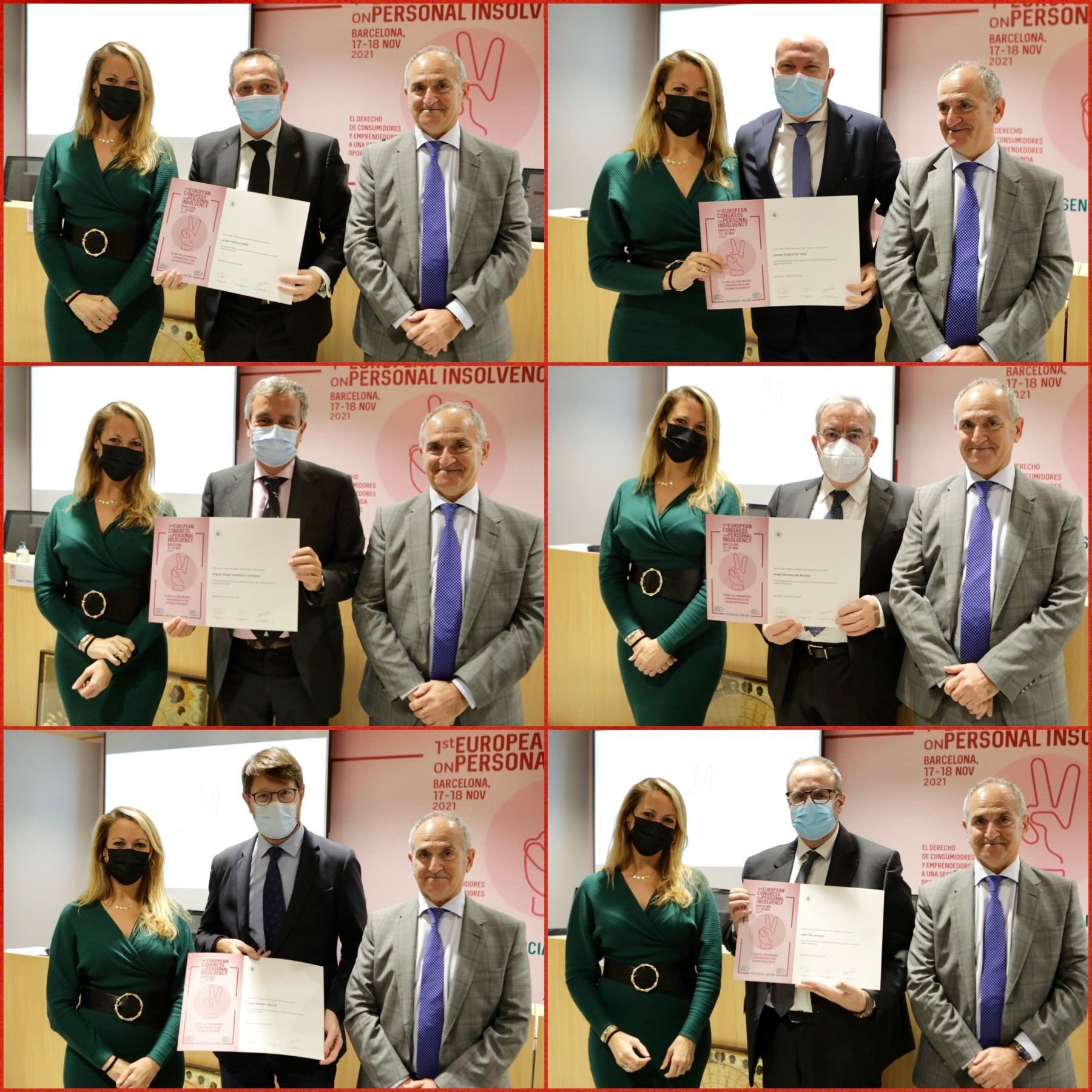 La degana de l’ICAB, Mª Eugènia Gay, ha lliurat els primers ‘Premis ICAB a la Segona Oportunitat’ a Carles R. Puigcerver Asor, inspector delegat Servei d'Inspecció del CGPJ; Miguel Ángel Chamorro González, magistrat del Jutjat de Primera Instància núm. 50 de Barcelona; Ángel Serrano de Nicolás, notari; Josep Medina Padial, degà del Col·legi d’Advocats de Granollers del 2012 al 2019; Carles Mundó i Blanch, conseller de Justícia del 2016 al 2017; i Abel Pié Lacueva, degà del Col·legi de Manresa del 2009 al 2021.