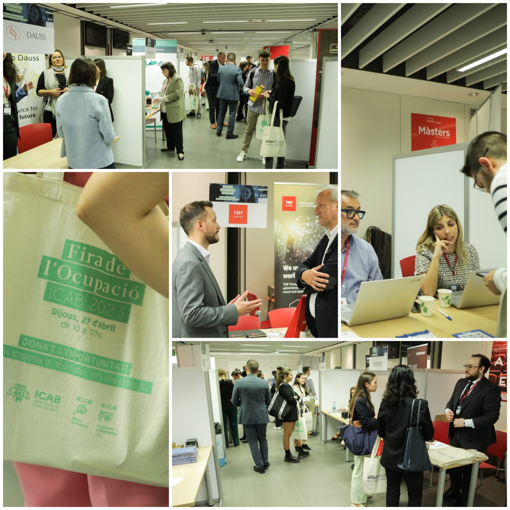 El Col·legi de l'Advocacia de Barcelona (ICAB) ha celebrat la 7a Fira de l'Ocupació (2023) aquest dijous 27 d'abril, al Centre de Formació. Una iniciativa impulsada pel Servei d’Orientació i Ocupació Professional (SOOP) en què s’han inscrit prop de 350 persones col·legiades i a través de la qual s’ha facilitat a l’advocacia la recerca laboral i s’ha promogut l’emprenedoria.