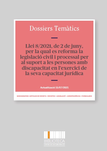Nou dossier del Centre de Documentació de l'ICAB: ”Llei 8/2021, de 2 de juny, per la qual es reforma la legislació civil i processal per al suport a les persones amb discapacitat en l’exercici de la seva capacitat jurídica”. Tots els continguts a text complet!