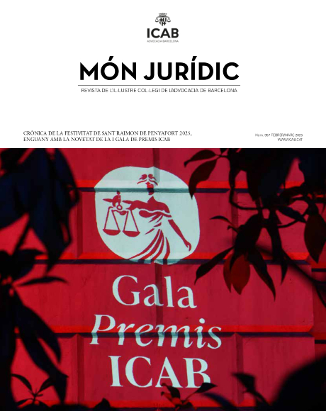 La revista ‘Món Jurídic’ és una publicació editada pel Col·legi de l’Advocacia de Barcelona amb la finalitat de ser un mitjà informatiu i d’expressió de les persones col·legiades. És el reflex de la vida col·legial i un vehicle de comunicació de la Junta de Govern amb els col·legiats i col·legiades, alhora que permet l’intercanvi d’impressions entre col·legues de professió. La revista té periodicitat bimensual. Se’n fan 6 números l’any. Podeu adreçar els vostres articles, cartes o opinions a monjuridic@icab.cat