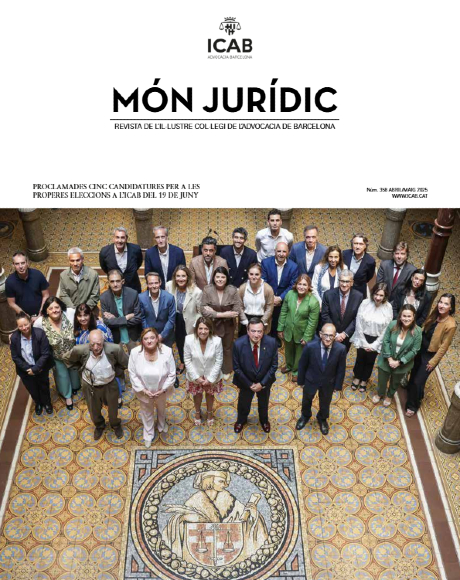 La revista ‘Món Jurídic’ és una publicació editada pel Col·legi de l’Advocacia de Barcelona amb la finalitat de ser un mitjà informatiu i d’expressió de les persones col·legiades. És el reflex de la vida col·legial i un vehicle de comunicació de la Junta de Govern amb els col·legiats i col·legiades, alhora que permet l’intercanvi d’impressions entre col·legues de professió. La revista té periodicitat bimensual. Se’n fan 6 números l’any. Podeu adreçar els vostres articles, cartes o opinions a monjuridic@icab.cat