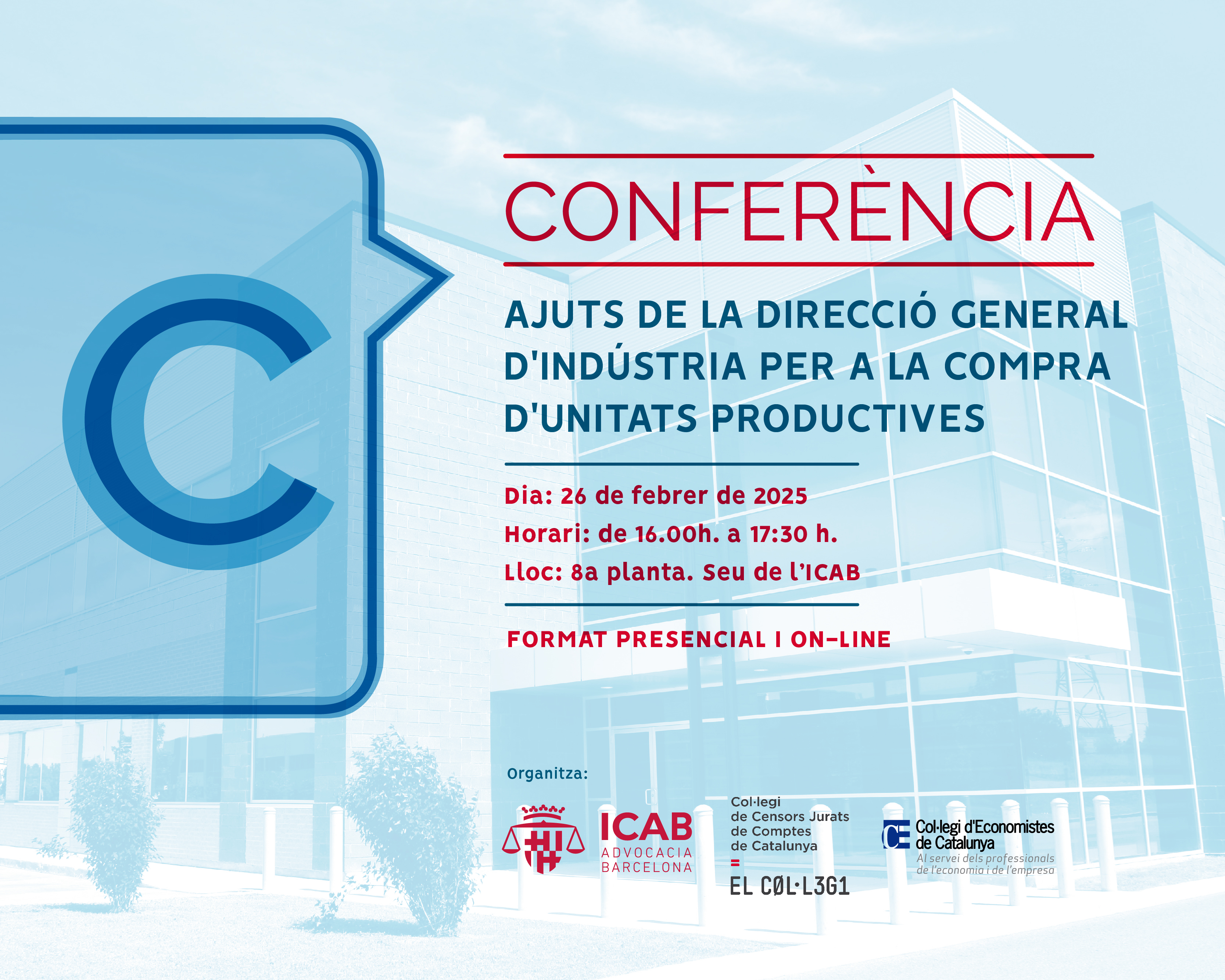26/02/2025, a les 16h, organitzada per l'ICAB, el Col·legi de Censors Jurats de Comptes de Catalunya i el Col·legi d’Economistes de Catalunya.