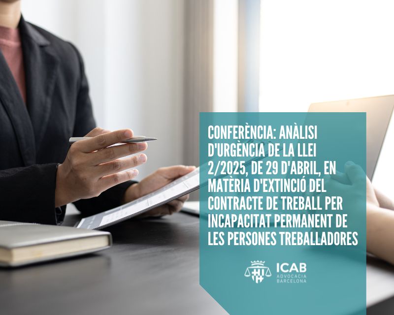 Conferència: Anàlisi d'urgència de la Llei 2/2025, de 29 d'abril, en matèria d'extinció del contracte de treball per incapacitat permanent de les persones treballadores