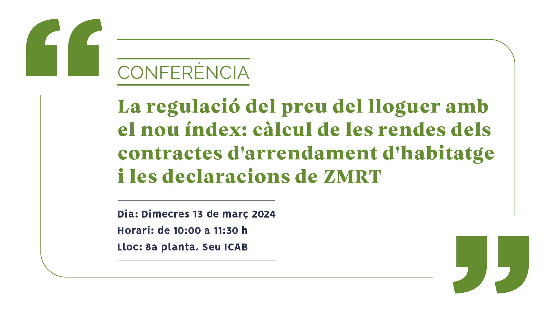Conferència: La regulació del preu del lloguer amb el nou índex: càlcul de les rendes dels contractes d'arrendament d'habitatge i les declaracions de ZMRT