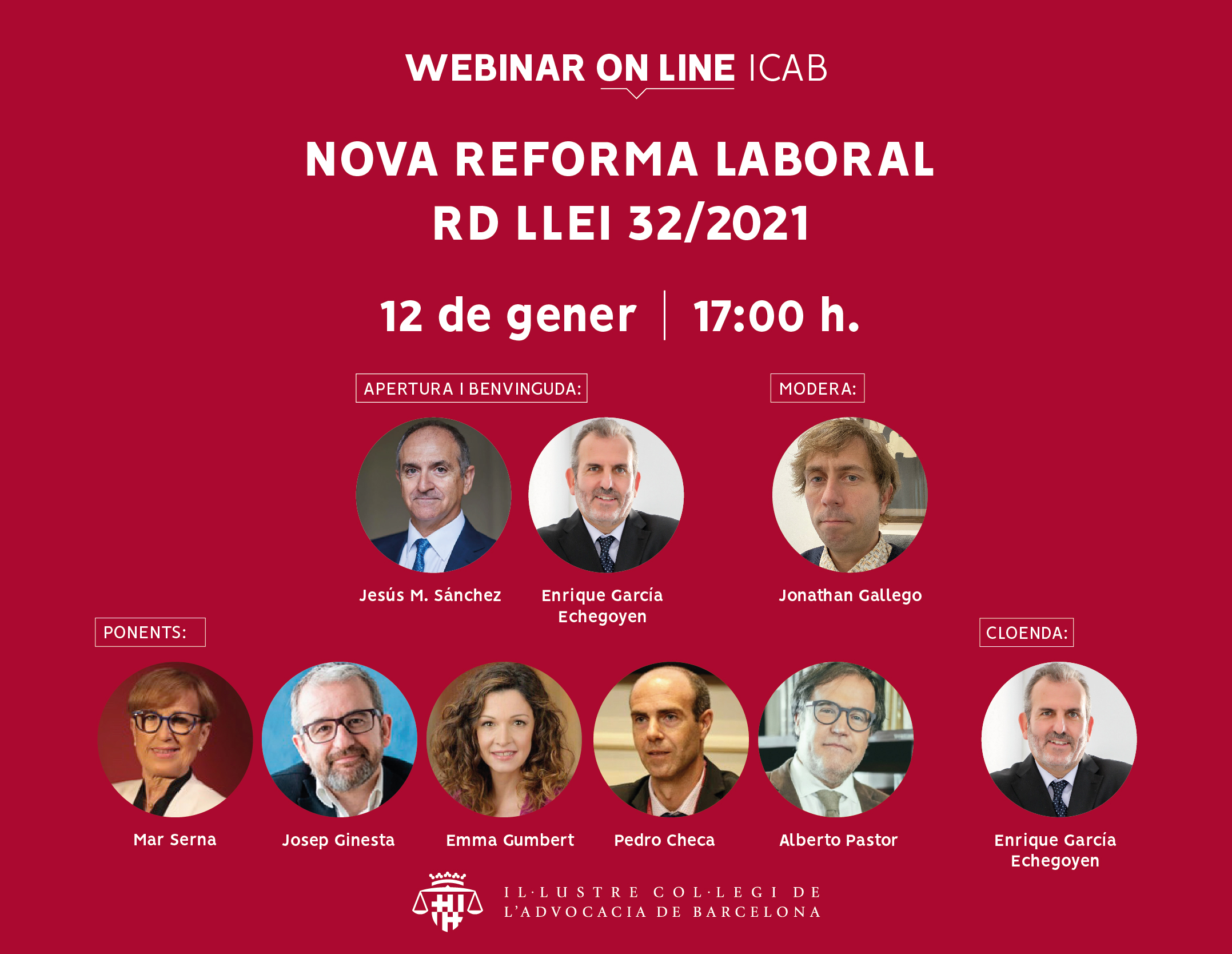 12/01/2022, a les 17h, per ZOOM (format blended). Organitzada per la Comissió de Normativa i la Secció de Dret Laboral de l'ICAB