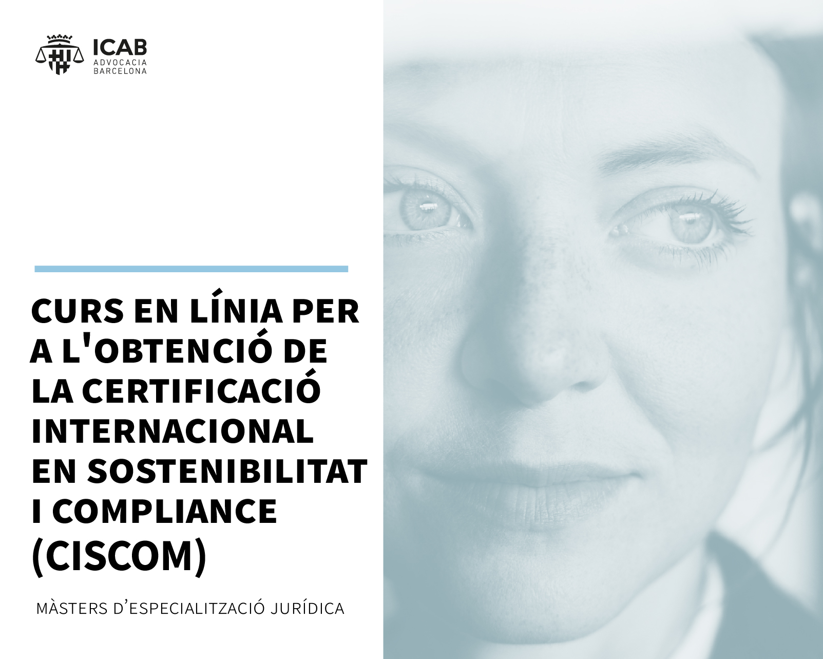Inici: 01/04/25. Curs ONLINE per a l'obtenció de la Certificació Internacional en Sostenibilitat i Compliance (CISCOM) de l'Associació Espanyola de Compliance (ASCOM). DIMARTS i DIJOUS DE 18 a 20 h