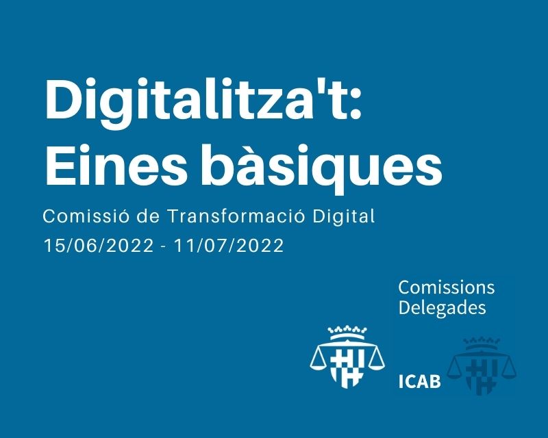 Aquest curs, organitzat per la Comissió de Transformació Digital de l'ICAB, està pensat per ajudar a tothom qui vol iniciar el camí cap a la transformació digital, des del vessat més bàsic. L'objectiu és impartir unes classes molt pràctiques per tal de facilitar l'aprenentage. Esperem que sigui profitós!! Inici: 15 de juny de 2022.