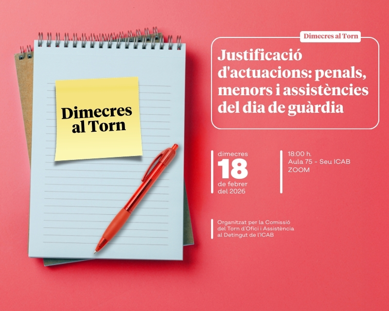Inici: 18/02/2026. Organitzat per la Comissió del Torn d'Ofici i Assistència al Detingut de l'ICAB.