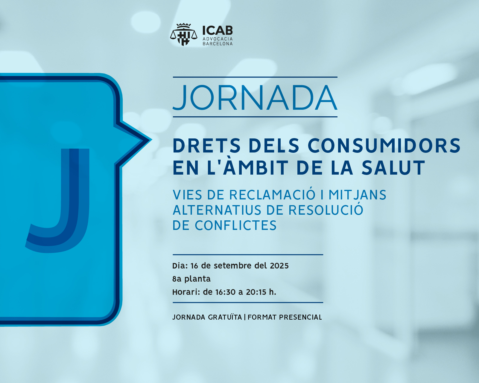 16/09/2025, a les 16.30 h. Organitzen: Secció de Dret de Consum i Secció de Dret Sanitari de l’ICAB.